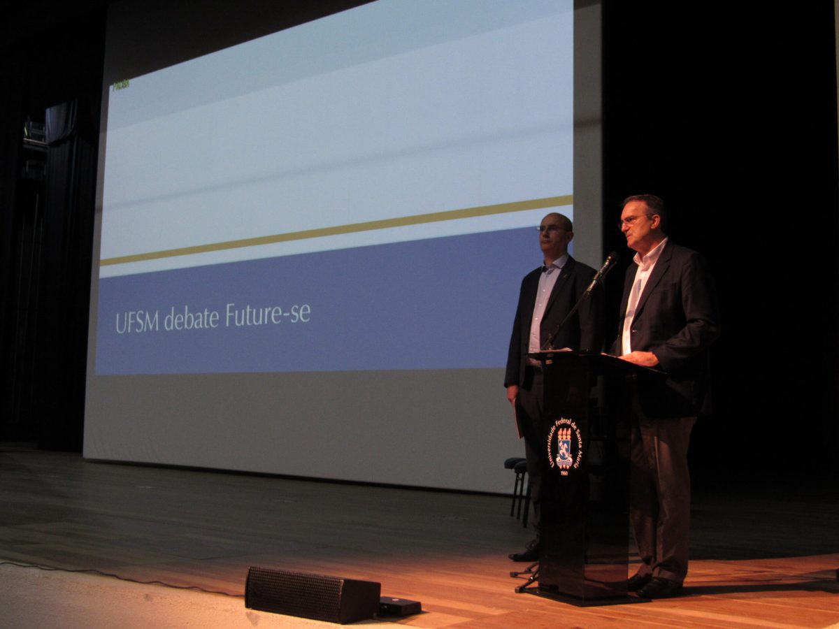 Cerca de 1200 pessoas se reuniram no Centro de Convenções da UFSM, na manhã de quinta-feira, 8 de agosto, para saber mais sobre o Future-se. Durante a audiência pública chamada pela reitoria, o reitor, Paulo Burmann, acompanhado do vice, Luciano Schuch, apresentou seu parecer sobre o projeto do Governo Federal, suas consequências e inquietações, além de ouvirem os presentes em várias rodadas de manifestações.