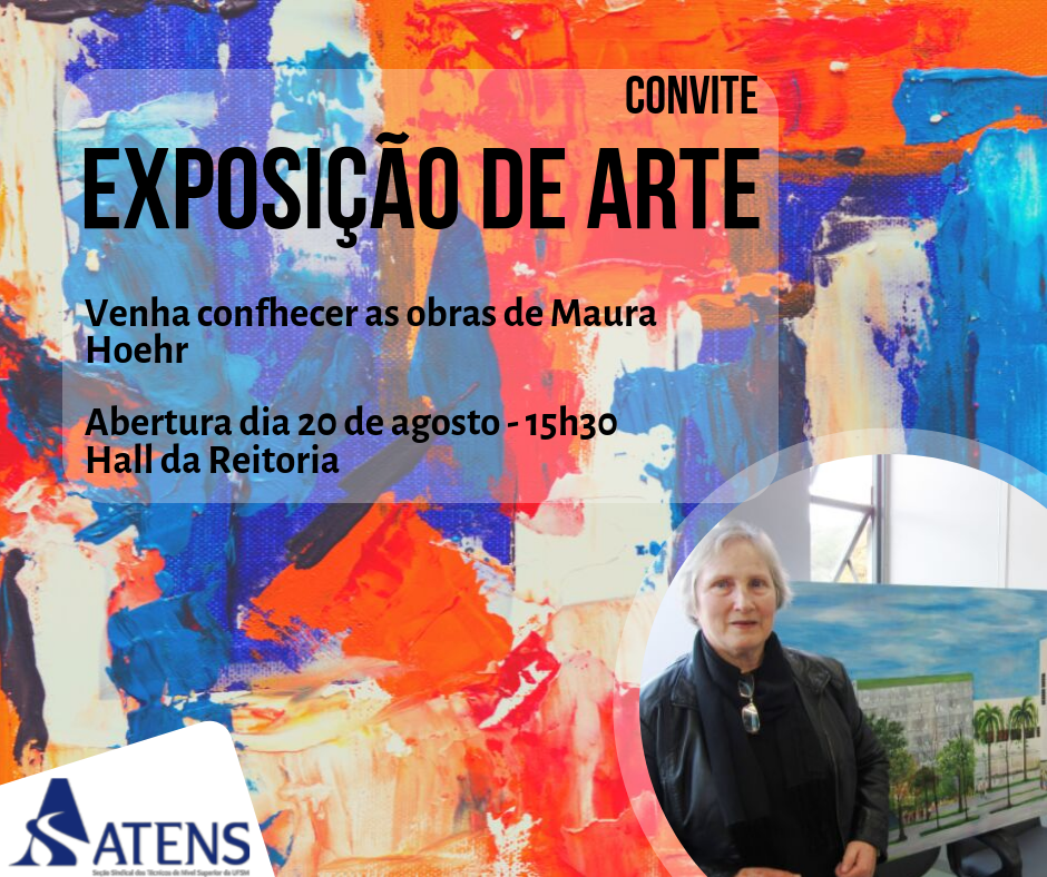 Para que todos os/as filiados/as possam conhecer o quadro e também outras composições da artista, a ATENS organizou uma exposição de suas telas que acontecerá no hall da Reitoria. Na terça-feira, dia 20, às 15h30 será feita a abertura oficial da exposição com coquetel e conversa com Maura. As obras ficarão expostas no hall da Reitoria até a sexta-feira, dia 23.