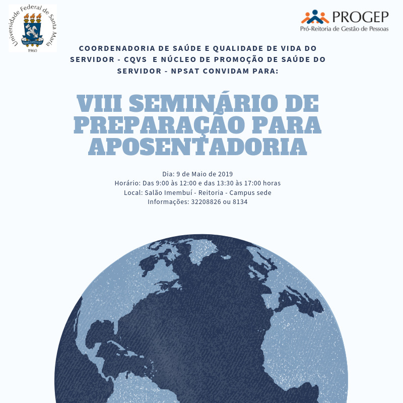 Na próxima quinta-feira, 9 de maio, acontece o 8º Seminário de Preparação para Aposentadoria, organizado pela Coordenadoria de Qualidade de Vida do Servidor. Com palestras e […]