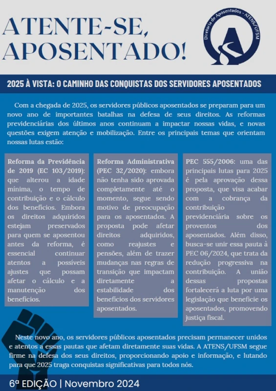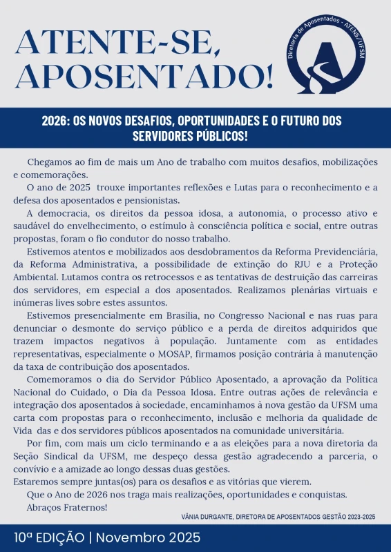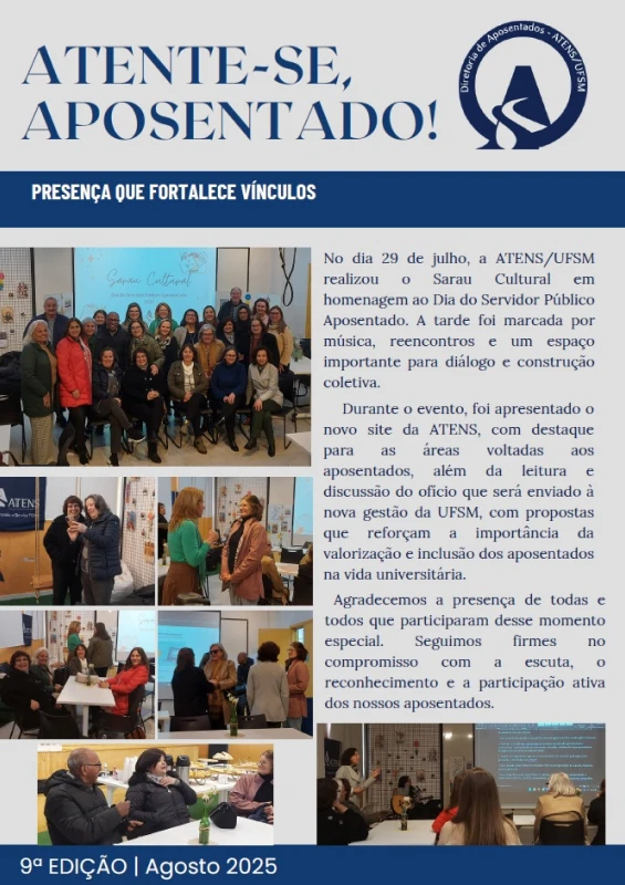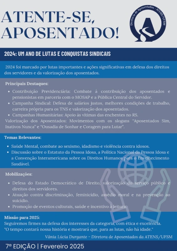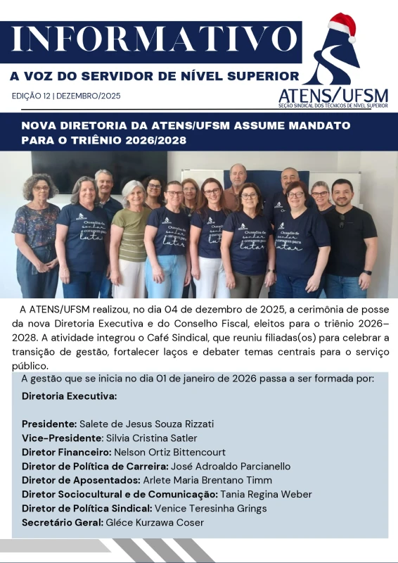 Bem-vindo à página de informativos da ATENS/UFSM! Aqui você pode acessar todas as versões online dos nossos informativos e manter-se atualizado com as últimas notícias e eventos da nossa comunidade.