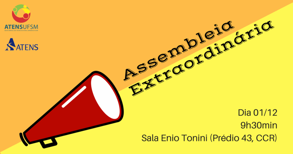 A ATENS/UFSM convoca todos os seus filiados para a Assembleia Extraordinária, que será realizada no próximo dia 18 de abril (terça-feira), às 14 horas, na sala […]