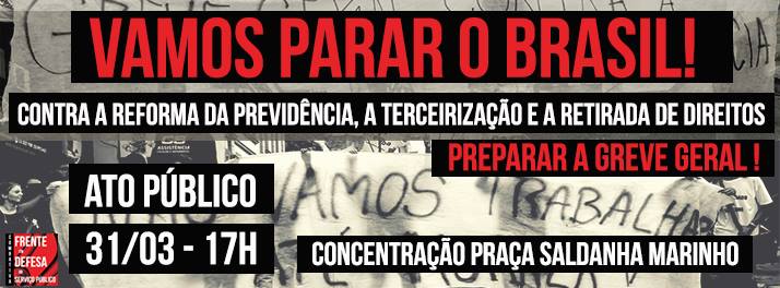 Nesta sexta-feira, a partir das 17h, haverá concentração para manifestação contra a Reforma da Previdência, a Lei das Terceirizações e a Reforma Trabalhista na Praça Saldanha […]